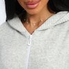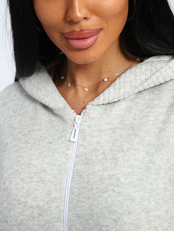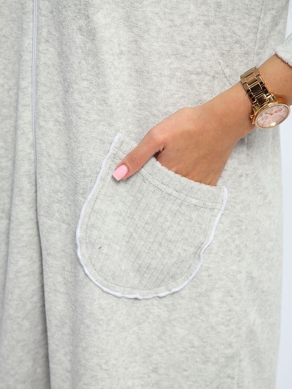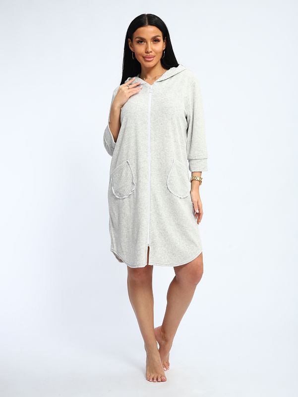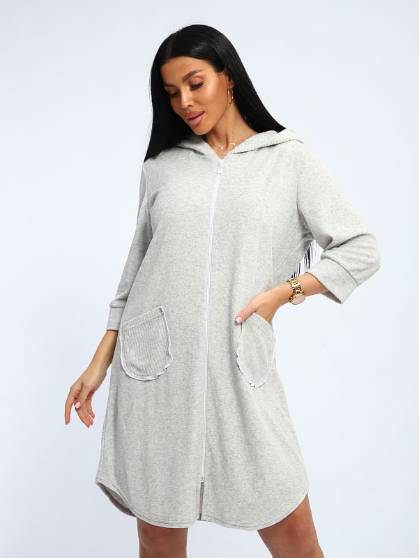 Халат махровый на молнии с двумя карманами и капюшоном, длинна средняя.