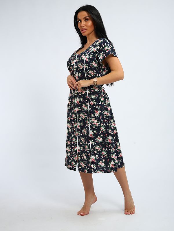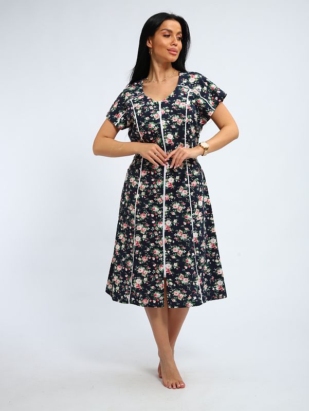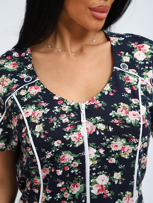 Стильный халат на молнии, рукав кимано, украшен кантом по рельефу и пуговицами.